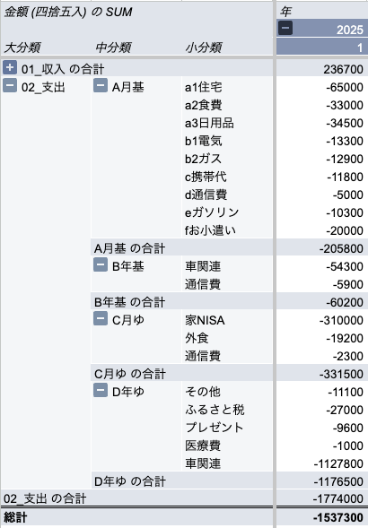 ※ 交際費(C月ゆ_娯楽)は僕の配当金使用履歴が入っています。