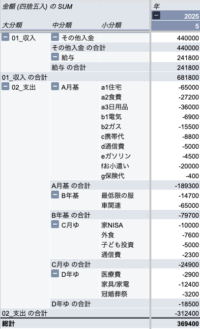 ※ 交際費(C月ゆ_娯楽)は僕の配当金使用履歴が入っています。