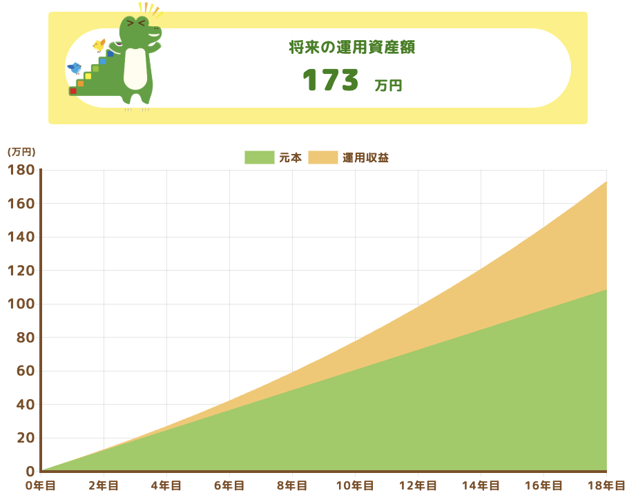 18年間、月5,000円を積み立てた場合の運用シミュレーションは以下の通り。