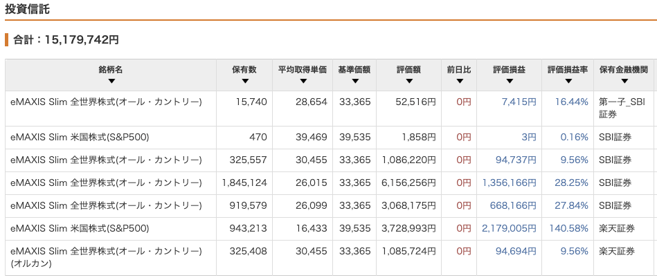 ※銘柄別の表は省略。未来の自分が見返せるようスクショで残す方針。