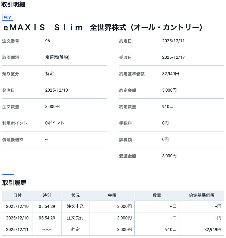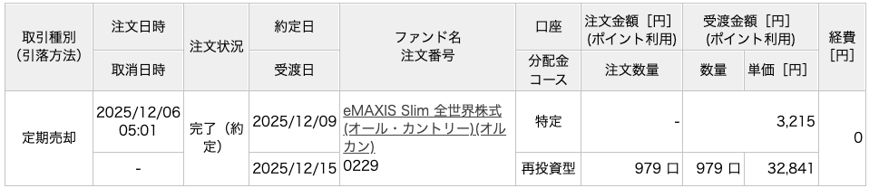 • 実施方法:自動で毎月15日頃に自動取り崩し