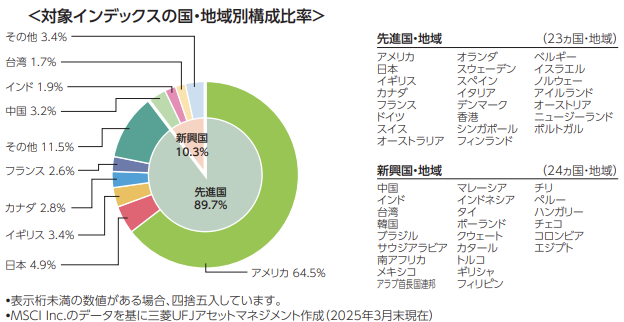 三菱UFJアセットマネジメントが提供するインデックスファンドで、世界中の株式に分散投資できる投資信託です。